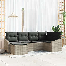 vidaXL Lounge Set 6 Pièces avec Coussins Gris Clair Poly Rotin
