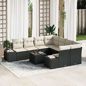 vidaXL 9-delad trädgårdsoffgrupp med kuddar svart polyrotting