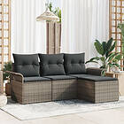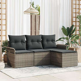 vidaXL 4-delad Trädgårdsoffasats med kuddar Grå Polyrotting 3345309