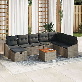 vidaXL 9-delad trädgårdsoffa med dynor Grå Polyrotting 3359580
