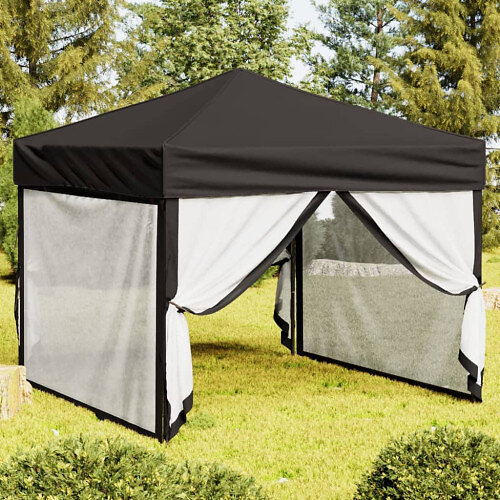 vidaXL Hopfällbart partytält med sidoväggar svart 3x3m 93532