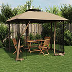 vidaXL Paviljong med dubbelt tak & nätväggar taupe 2,94x2,94 m stål 368456