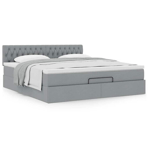 vidaXL Ottoman säng med madrass 160x200 ljusgrå cm tyg 3311553