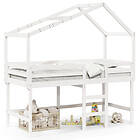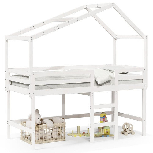 vidaXL Våningssäng med stege och tak vit 90x190 cm massiv furu 3282069