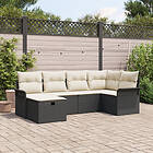 vidaXL 6-delad Trädgårdsoffset med kuddar Svart Polyrotang, 2-sits Trädgårdsoffa med förvaring och kuddar Svart Polyrotang