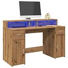 vidaXL Skrivbord med LED ek 140x55x91 cm konstruerat trä