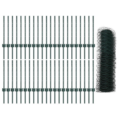 vidaXL Stängselstolpar 11 st U-Kanals Grön 60 cm Stål, Hexagon Stängsel Grön 0,6x100 m Stål