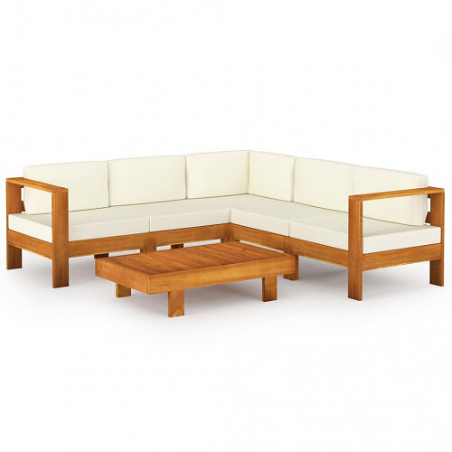 vidaXL Loungegrupp för trädgården med gräddvita dynor 6 delar akacia