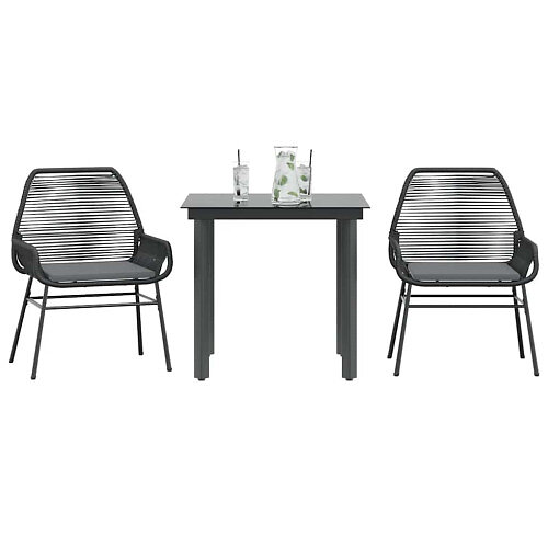 vidaXL Matgrupp för trädgård med dynor 3 delar svart konstrotting&glas