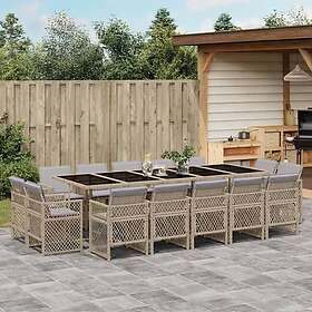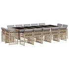 vidaXL Matgrupp för trädgården m. dynor 15 delar mixbeige konstrotting