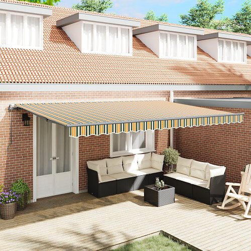 vidaXL Automatisk Hopfällbar Markis Grön Gul och 500x300 cm Ersättningsduk för 5x3 m Ram