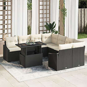 vidaXL 9-delars trädgårdsoffan med kuddar svart polyrotting