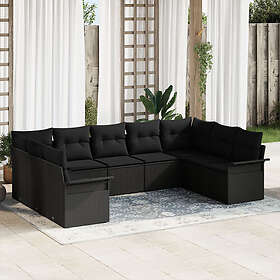 vidaXL 9-delat trädgårdsoffset med kuddar poly svart rattan
