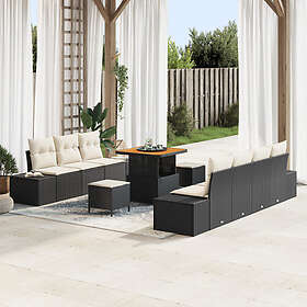 vidaXL 10-delad Trädgårdsoffセット med dynor Poly Svart Rattan Akacia
