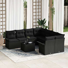 vidaXL 9-delars trädgårdsoffasett med kuddar polyroting svart
