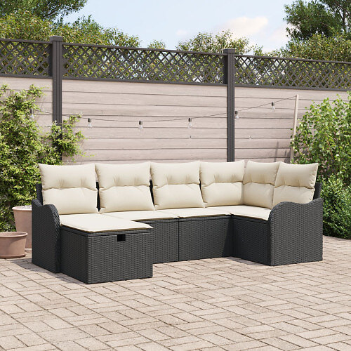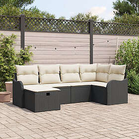 vidaXL 6-delad trädgårdsoffasats med dynor Poly Svart Rattan
