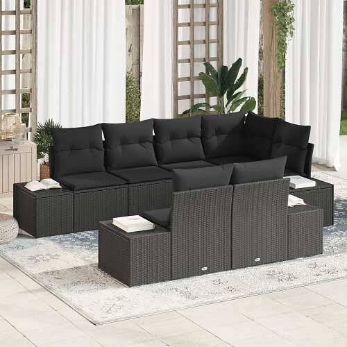 vidaXL Ensemble de salon 7 pièces avec coussins Poly Noir Rotin