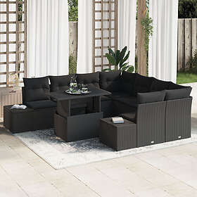 vidaXL 9 Delars Trädgårdsoffset med Svart Kuddar Poly Rottning