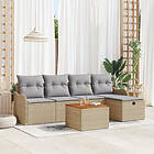 vidaXL 6-delars trädgårdsoffset med kuddar poly beige rotting