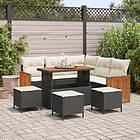 vidaXL 9-delars trädgårdsoffaset med kuddar Svart Poly Rattan Acaciaträ