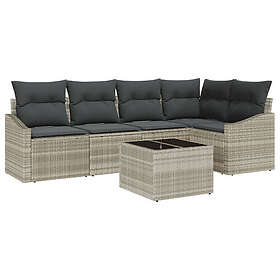 vidaXL 6-delat trädgårdsset med kuddar polyrotting grå