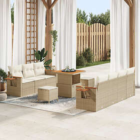 vidaXL 10-delad trädgårdsoffset med kuddar i beige poly rotting och akacia