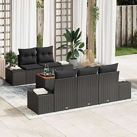 vidaXL Set med 6 delar för trädgårdsoffor kuddar svart polyrotting acacia
