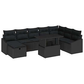 vidaXL 9 Delar Trädgårdsoffabänk med Svart Kuddar Poly Rotting