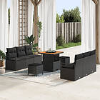 vidaXL 9-delad trädgårdsoffagrupp med kuddar svart polyrotting akacia