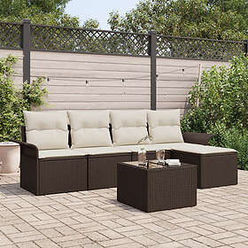 vidaXL 5-delad trädgårdsoffasett med kuddar poly grå rattan