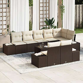 vidaXL 8-delars trädgårdsoffset med kuddar poly grå rattan