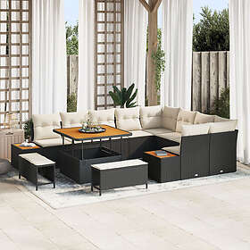 vidaXL 12-delars Trädgårdsoffset med Dynor Svart Polyrotting Akacia