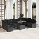 vidaXL 11-delars trädgårdsmatset med kuddar poly svart rattan akaciaträ