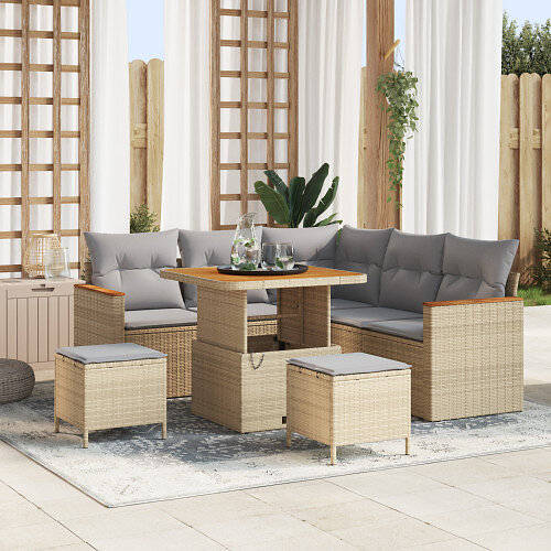 vidaXL 8-delad trädgårdssoffgrupp med kuddar Polyrotting Beige Akacia
