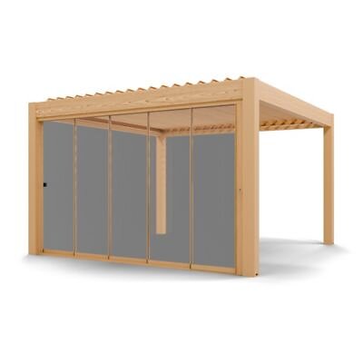 Pour Paroi vitrée coulissante pergola Apolo 4 x 4 m coloris chêne clair