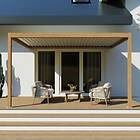 Salto Pergola bioclimatique adossée motorisée Alumin'home aluminium aspect bois 3 x 4 m avec LED intégrés