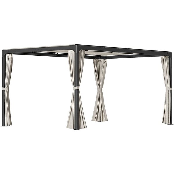 Outsunny Pergola rétractable 2,95l x 2,20H m double toit coulissant beige rideaux