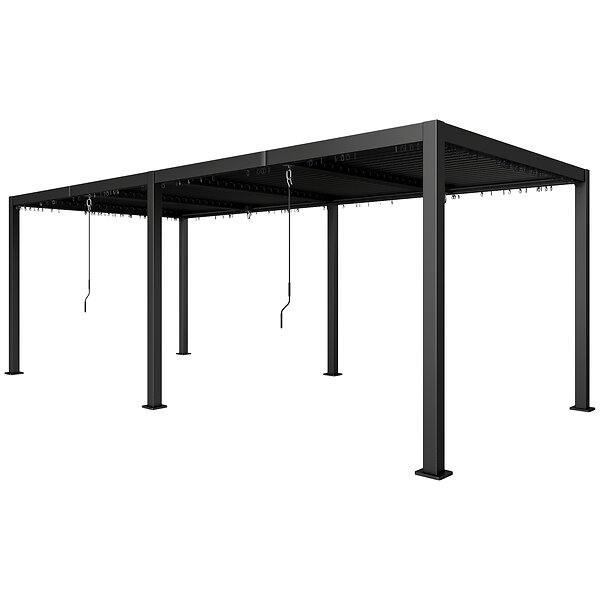 Outsunny Pergola 3 x 6 m pergola d'extérieur tonnelle avec persiennes manivelle, toit réglable en aluminium crochets gris foncé