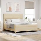 vidaXL Boxfjäder Säng med Madrass & LED Gräddfärgad 180x200 cm Tyg