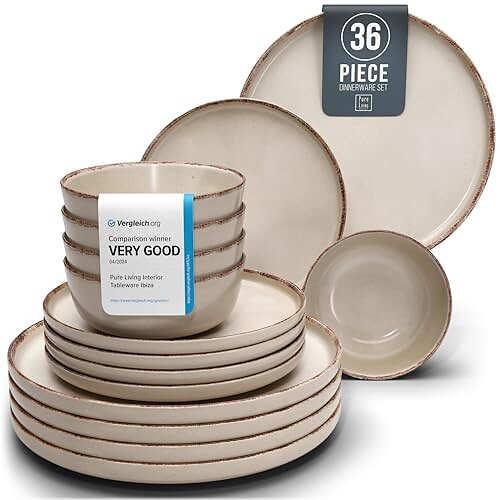 Pure Living Stengods porslinsset för 12 personer Rustic i 36 delar servis i rustik design