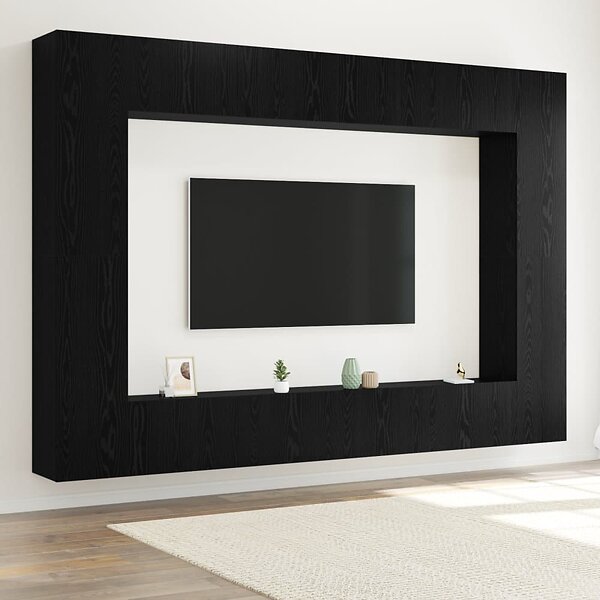vidaXL 12-delars TV-bänksset Väggmonterad Svart Ek Konstruerat Trä