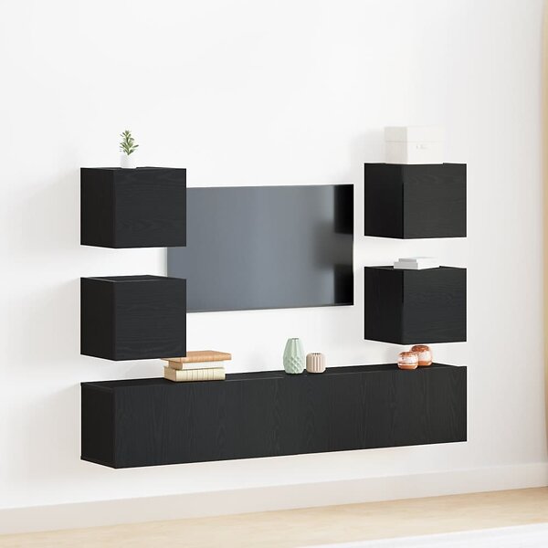 vidaXL 6-delad TV Byrå Set Svart Ek Konstruerat Trä