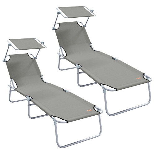 vidaXL Hopfällbara solstolar 2 st parasoll med Grå 600D Oxford-tyg 42003062