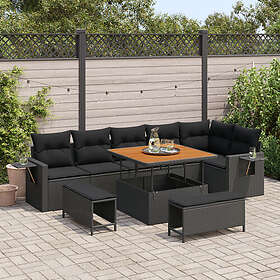 vidaXL 9-delat Trädgårdssofa Set med Kuddar Svart Poly Rattan Akacia