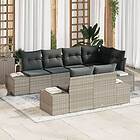 vidaXL Salon de Jardin 7 Pièces avec Coussins Gris Clair Poly Rotin