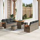 vidaXL 9-delad trädgårdsoff set med kuddar grå konstrotting akacia