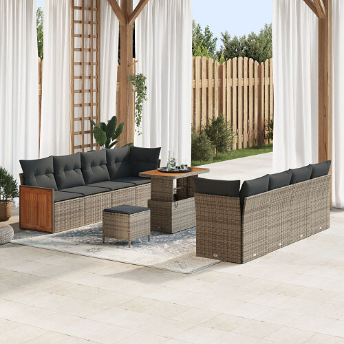 vidaXL 11-delars trädgårdssofa set med kuddar grå poly-rotting akacia
