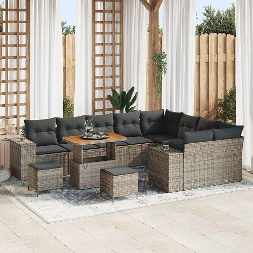 vidaXL 12-delad Trädgårdsoffagrupp med Kuddar Grå Polyrotting Akacia
