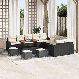 vidaXL 14 Bitars Trädgårdsofferset med Kuddar Svart Polyrotting Akacia