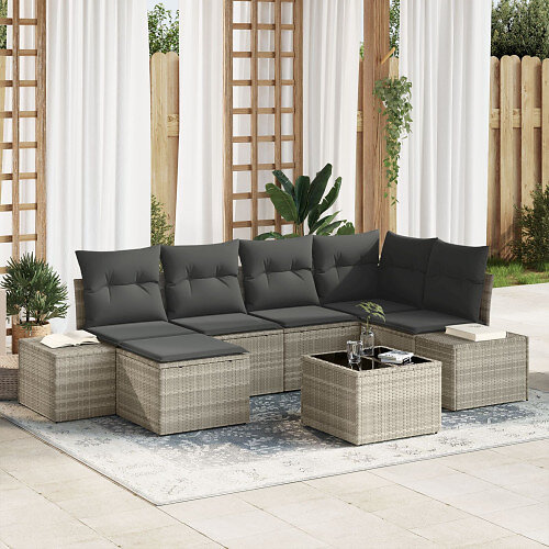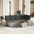 vidaXL 7-delad trädgårdssofa set med kuddar grå poly konstrotting